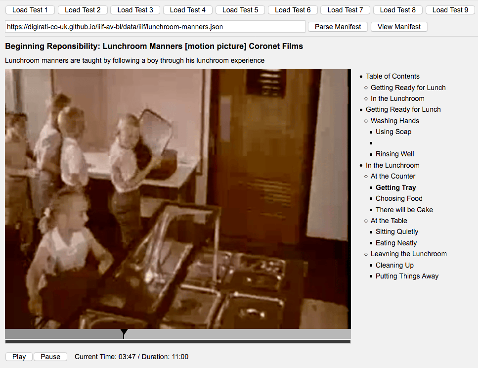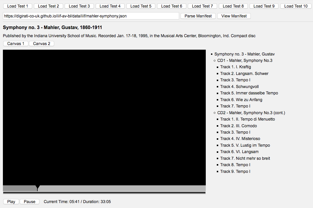 Implementation of several test fixtures and reference players for the British Library (lead by digirati), to investigate technical challenges of the IIIF A/V Technical Specification Group. The goal was to seamlessly synchronize multimedia assets described in the IIIF Presentation API v3 format (JSON-LD / Web Annotation Data Model), using a generic "canvas clock" concept. The original proof of concept implementation has now been further implemented as a re-usable Universal Viewer component.