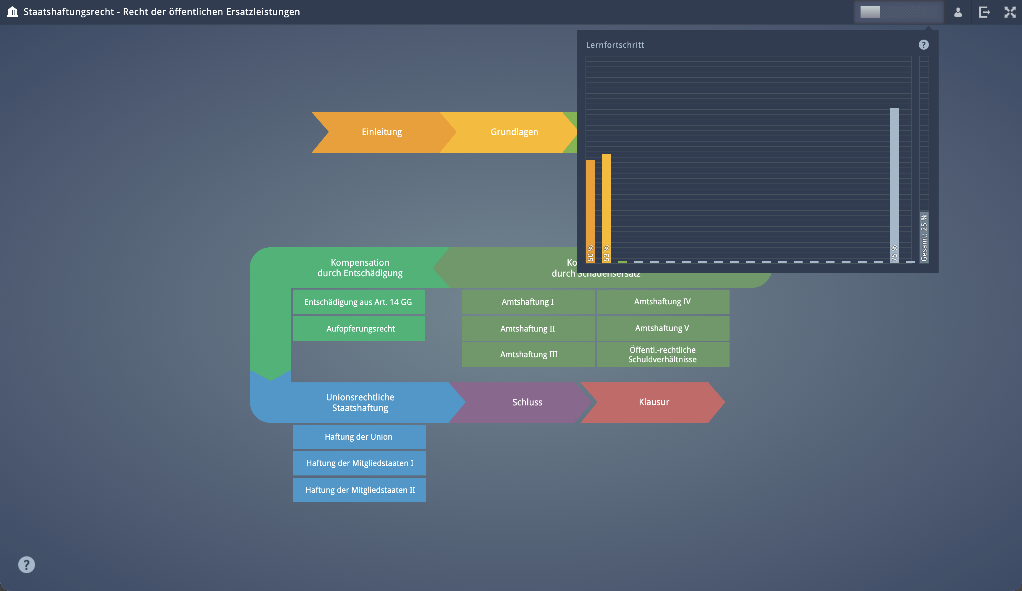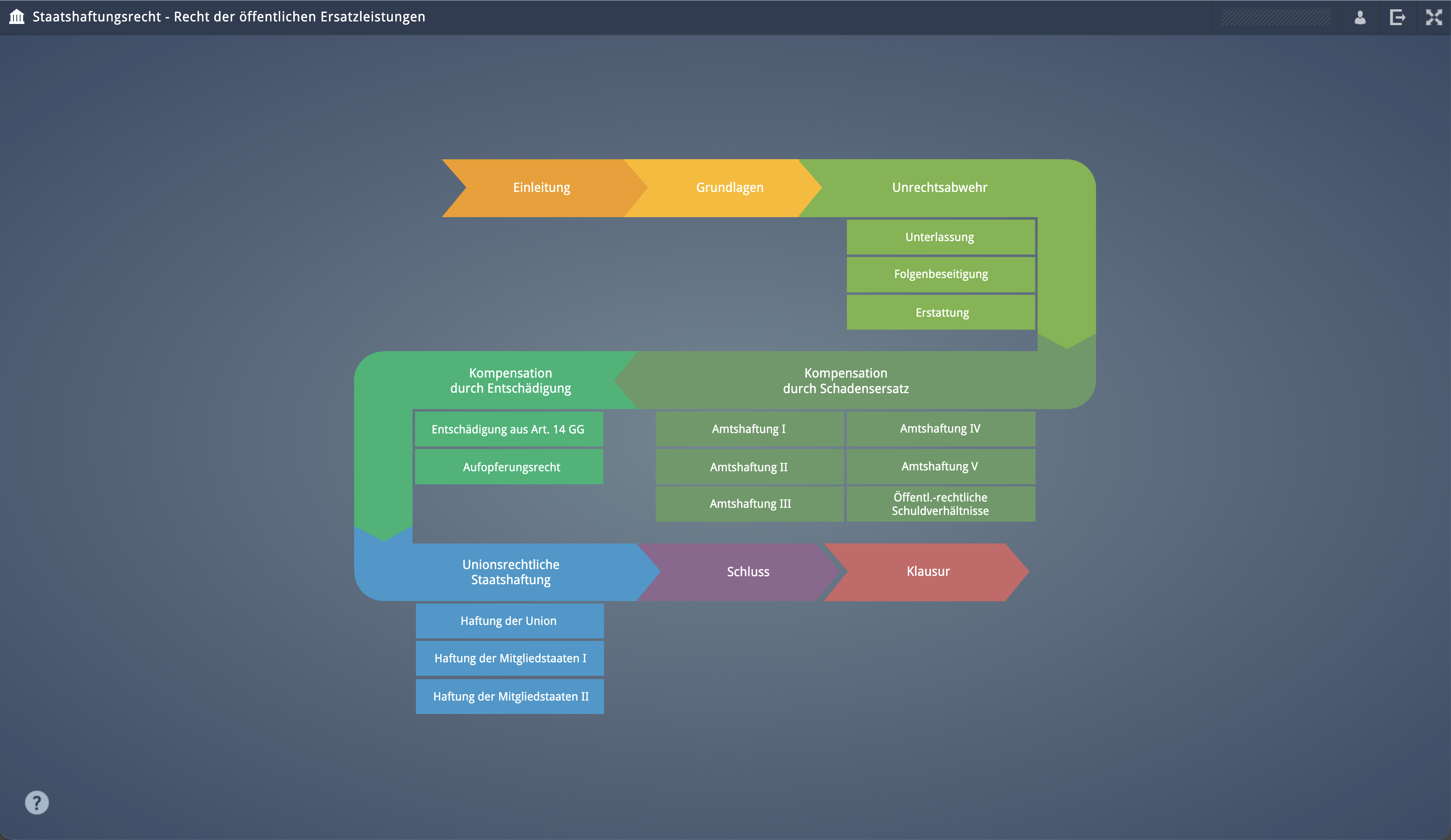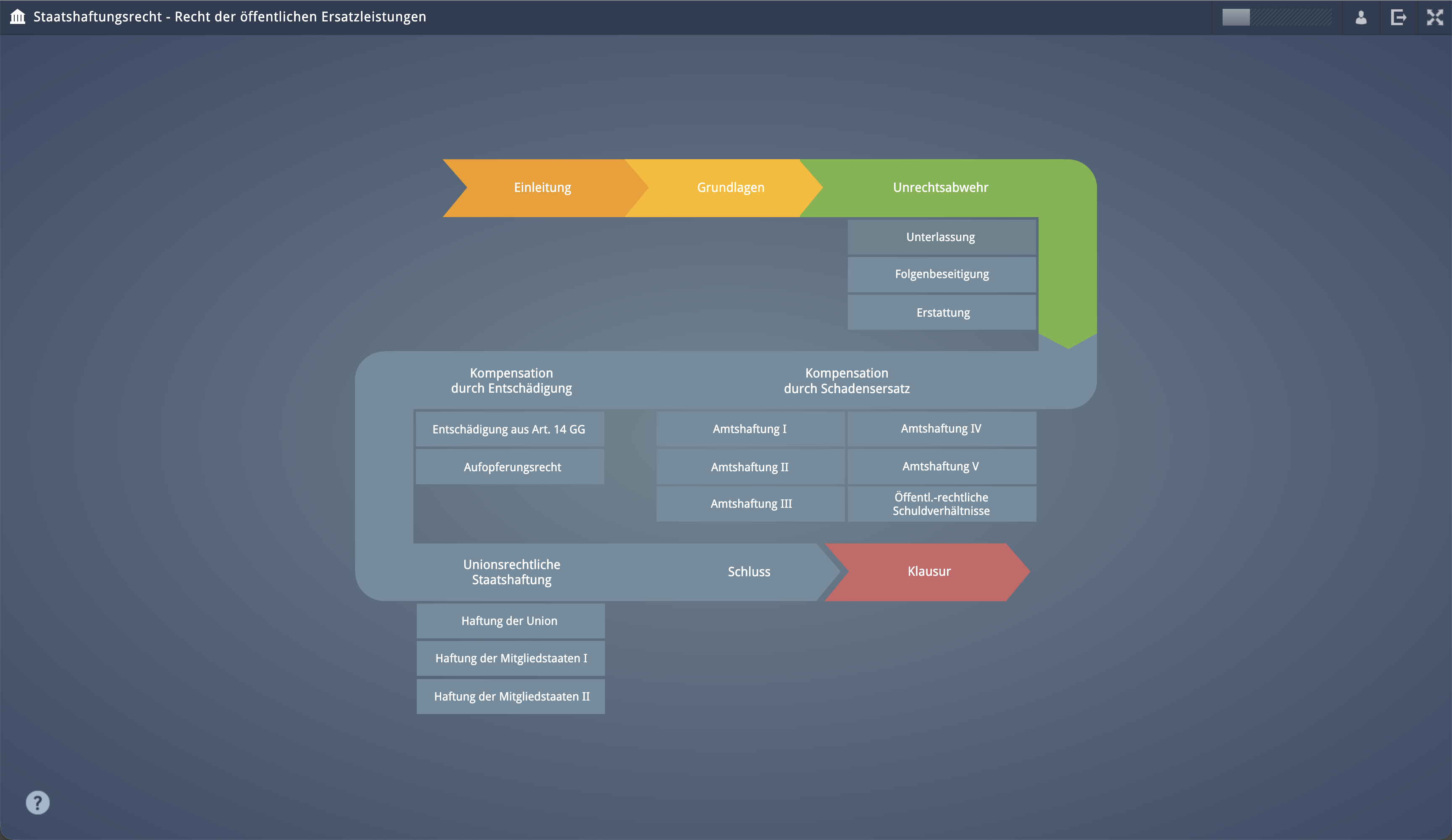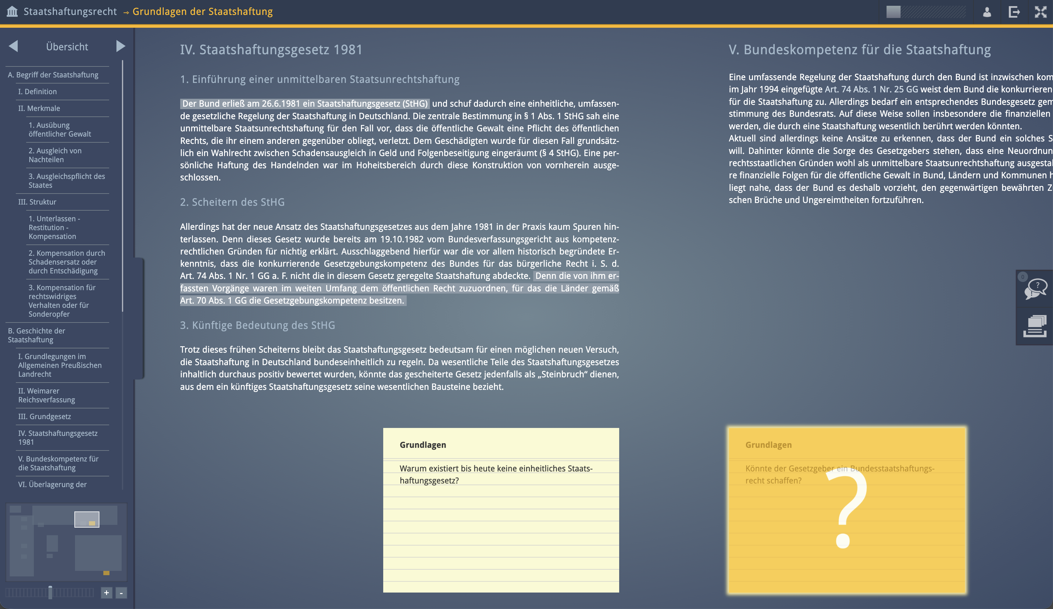 eLearning environment on the subject of 'state liability law' (Staatshaftungsrecht) for the Virtual University of Bavaria (VHB), in cooperation with Bayreuth University.